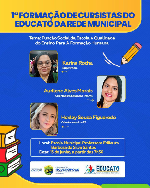 Integram o time de profissionais qualificadores a Karina Rocha, supervisora, Aurilene Alves, orientadora e Hexley Souza, orientadora do AEE.