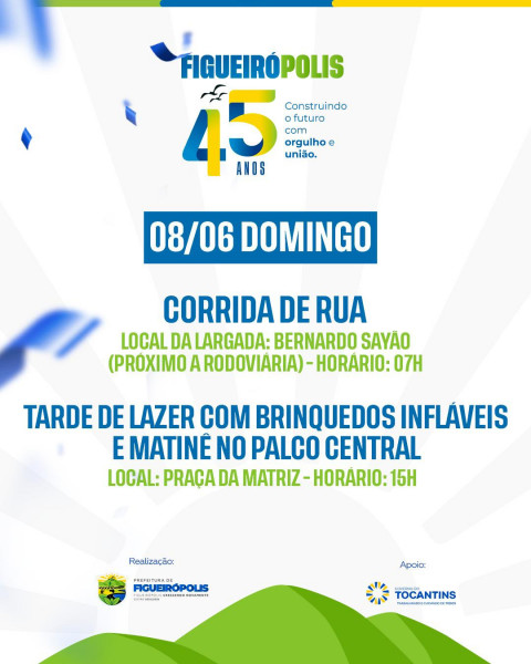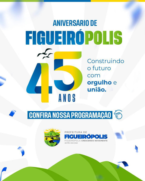 Figueirópolis está prestes a comemorar seus 45 anos, e uma programação incrível foi preparada para celebrar essa terra amada com tudo o que ela merece: orgulho, cultura e muita alegria! 💛