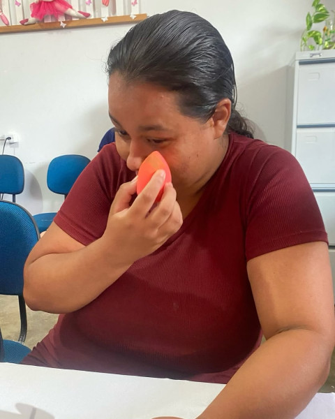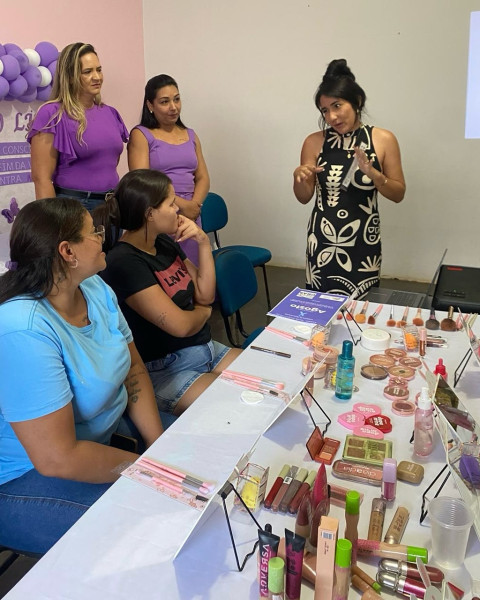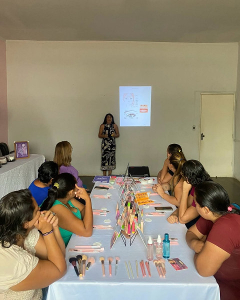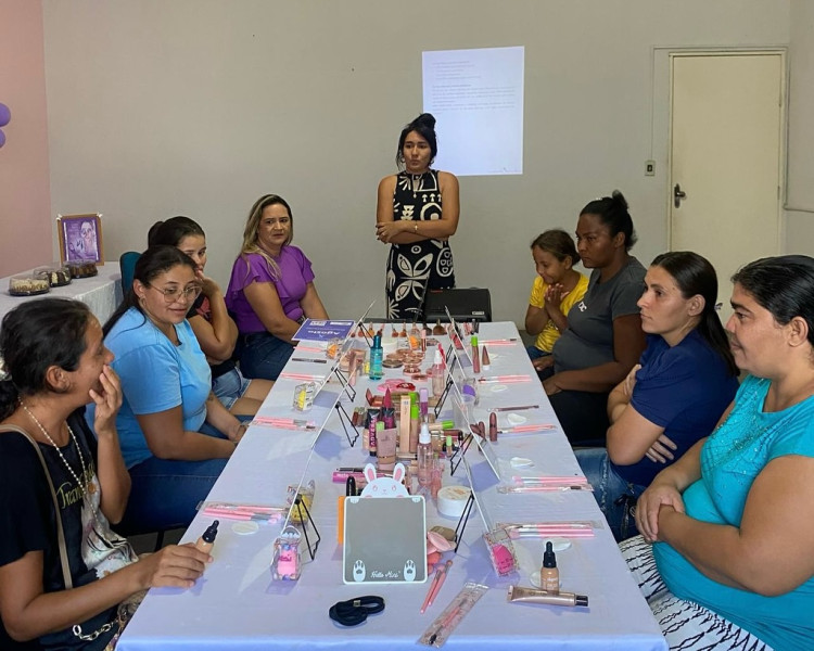 A atividade foi conduzida pela empreendedora e maquiadora Joyce Duarte, que compartilhou técnicas e dicas práticas para o cuidado pessoal e para a realização de uma maquiagem básica e bonita.