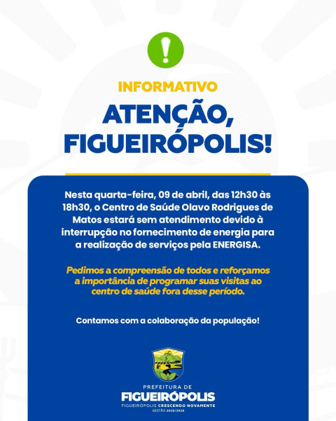 #PrefeituraDeFigueirópolis #AvisoImportante #SaúdeFigueirópolis #Energia #FigueirópolisTO #CompromissoComVocê