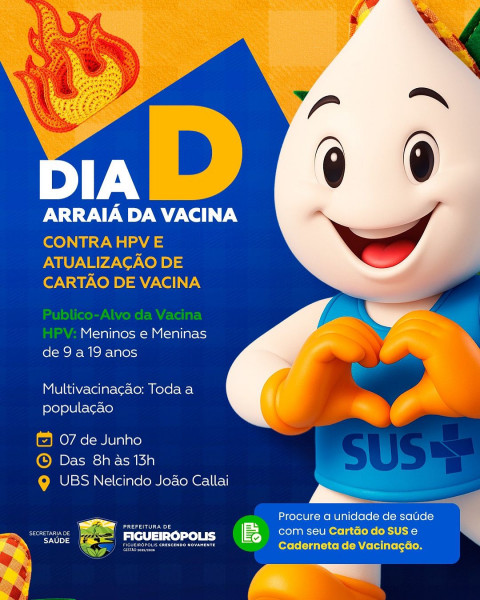 No ritmo do forró e com o coração cheio de cuidado, Figueirópolis convida toda a população para participar do nosso Arraiá da Vacina! No dia 07 de junho, a UBS Nelcindo João Callai será o palco dessa grande festa da saúde, com vacinação contra o HPV e atualização da caderneta de vacina para todas as idades.