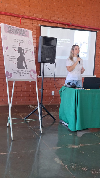A palestra abordou temas fundamentais como gravidez na adolescência e Infecções Sexualmente Transmissíveis (ISTs), reforçando a importância da prevenção, do autocuidado e de escolhas responsáveis.