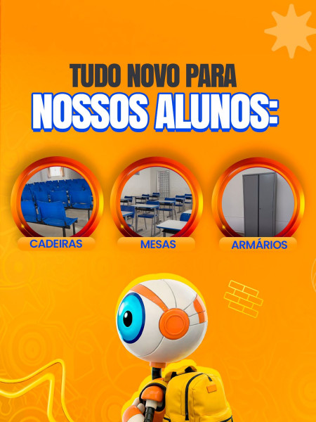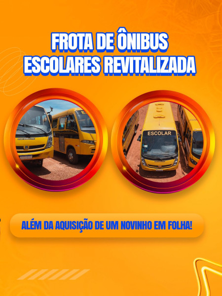 Frota de ônibus escolares revitalizada, mobiliário novo para alunos e professores, armários, mesas, cadeiras e escolas prontinhas para receber nossas crianças com mais conforto, cuidado e qualidade.