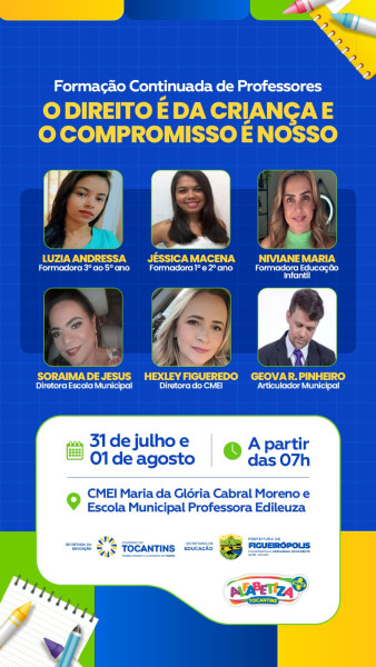 🗓️31/07 e 01/08 ⏰A partir de 07 horas 📍CMEI Maria da Glória Cabral Moreno e Escola Municipal Professora Edileuza